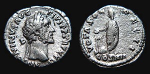Bs. PVDICITIA AVG i midten sidder en kvinde på en stol med armen